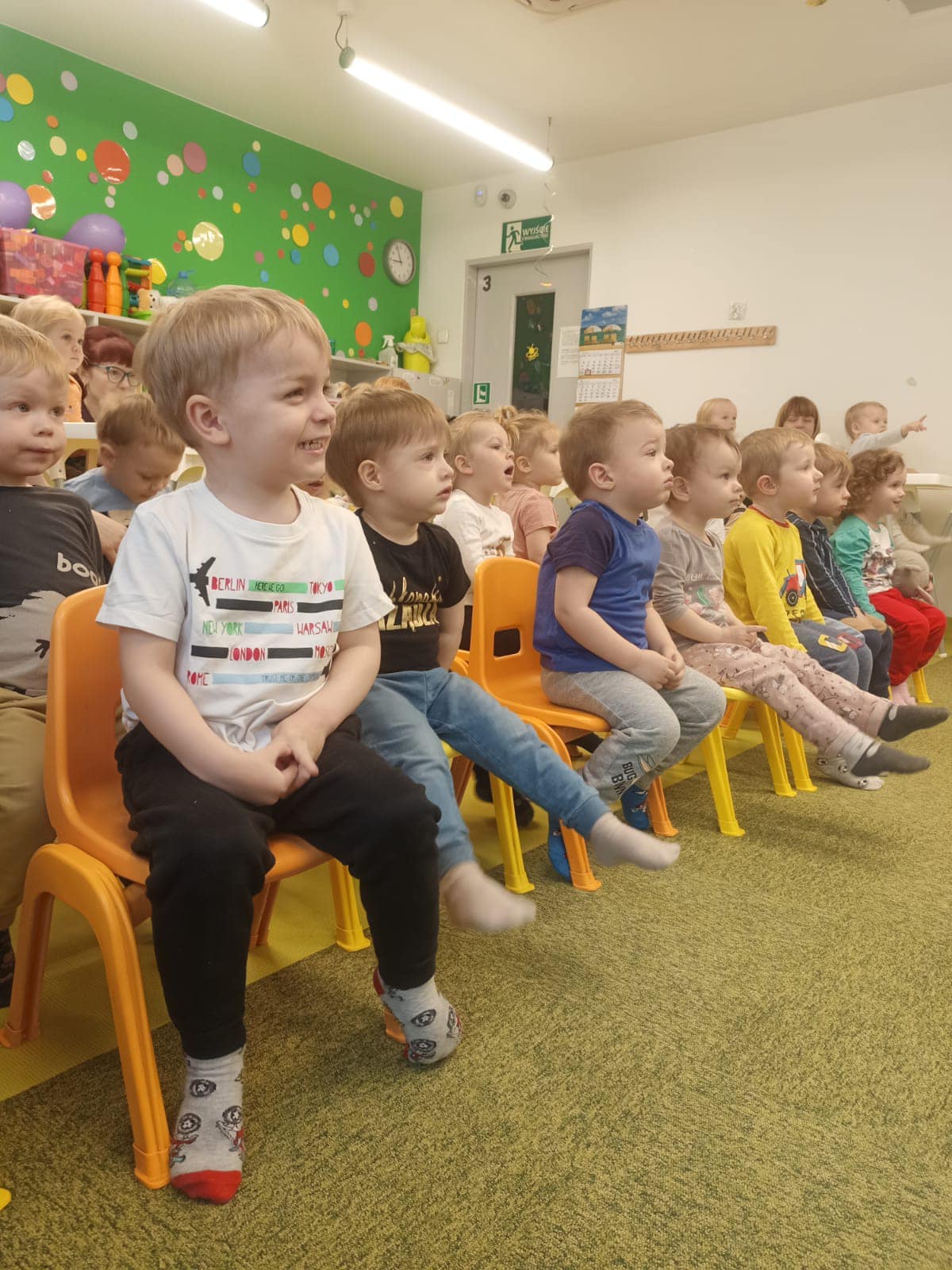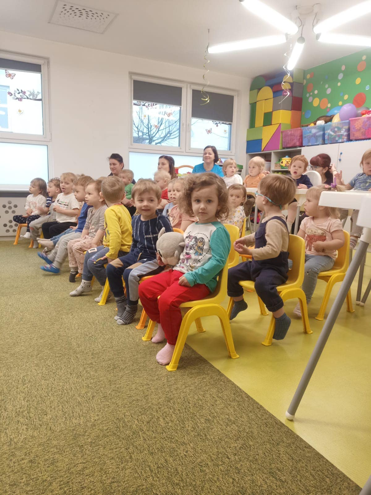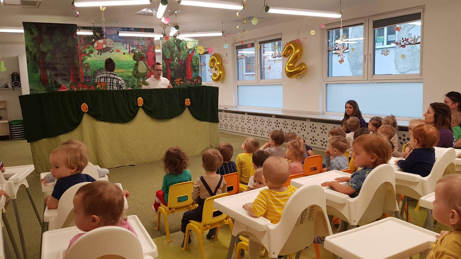 Dnia 26 kwietnia przyjechał do nas zaproszony teatrzyk lalek "Bajka" z przedstawieniem pt. "Wielkie sprawy małej żaby". Dzieci podczas przedstawienia mogły zobaczyć jak powinno się dbać o przyrodę, aby żyć z nią w zgodzie i przyjaźni. Teatrzyk trafił w dziesiątkę zdobywając serca naszej małej publiczności. Wszystkie dzieci były zapatrzone i bardzo żywo zainteresowane. Mamy nadzieję na więcej takich spotkań!