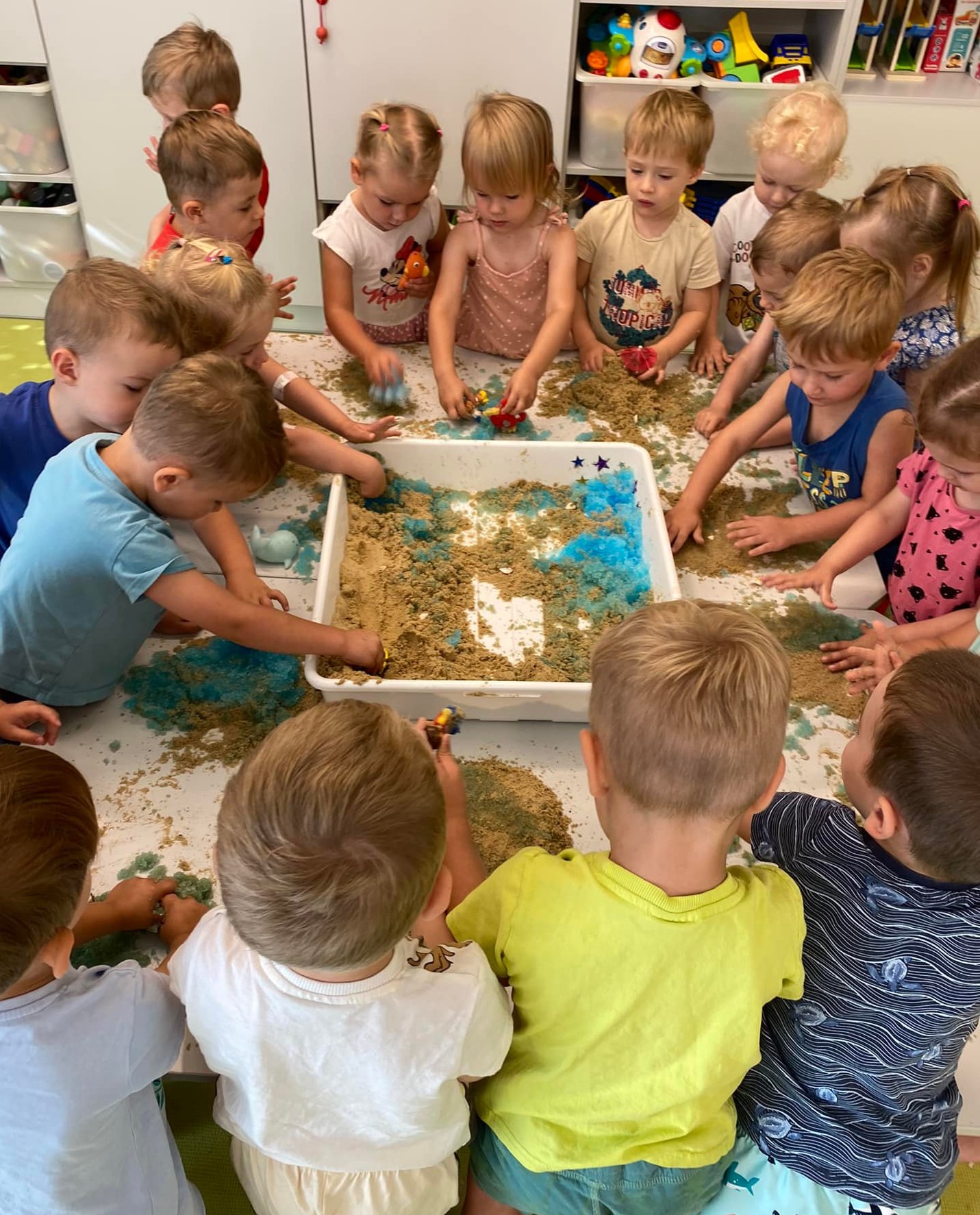 Możemy chyba powiedzieć, że w lecie dzieci zupełnie się nie nudzą - szczególnie u nas w żłobku! Żłobkowe Ciocie przygotowały dla naszych kochanych dzieciaków wiele ciekawych i fantastycznych wakacyjnych atrakcji. Dużo bawiliśmy sie na podwórku, na naszym placu zabaw, wprowadzając wiele elementów zajęć sensorycznych - zabawy piaskiem i wodą, kolorową galarteką, wodą zamienioną w żelową masę. W lecie dowiadywaliśmy się sporo o wakacyjych kierunkach - morze, góry czy jezioro - i jak się tam dostać? Mówilismy też o życiu zwierząt na wsi, byliśmy w smerfowej wiosce oraz tworzyliśmy własne lody! Dużo można opowiadać, ale my zapraszamy do naszej galerii zdjęć oraz oczywiście zachęcamy do polubienia naszej strony na facebooku - tam zawsze pojawia się coś ciekawego :)