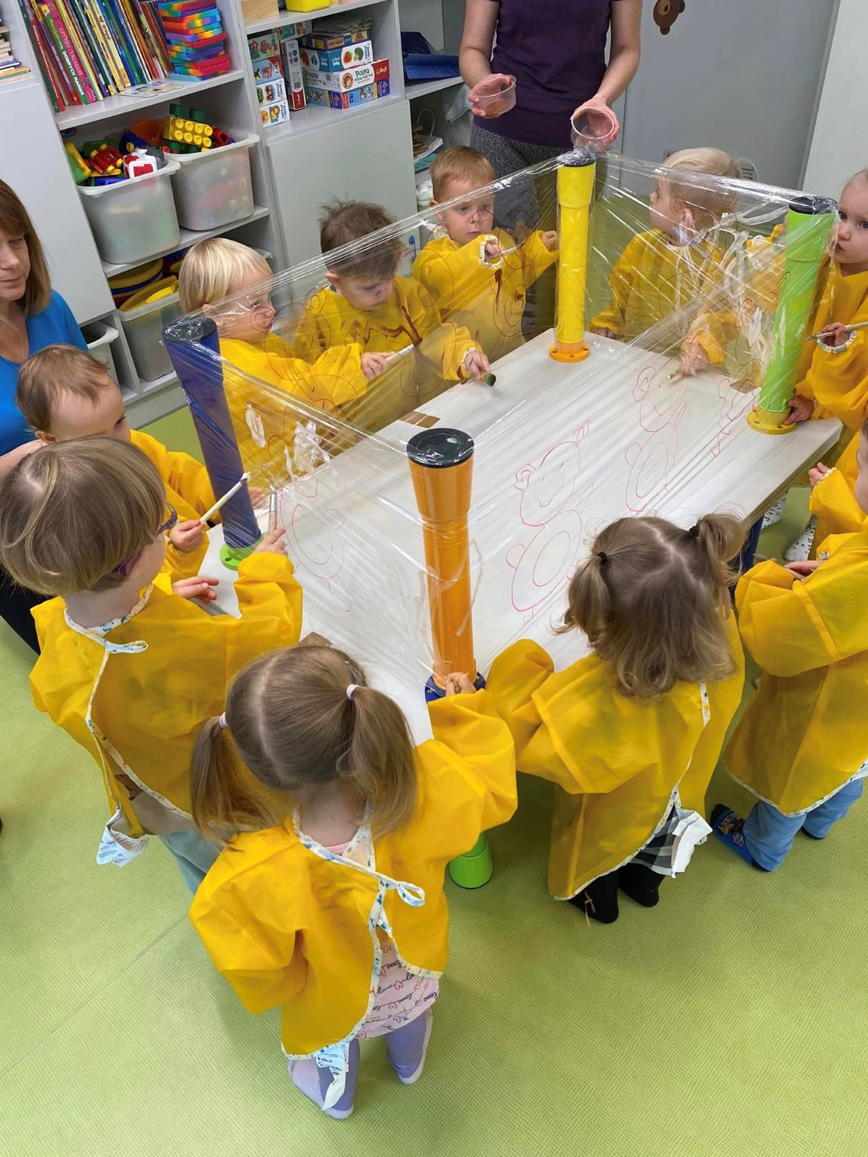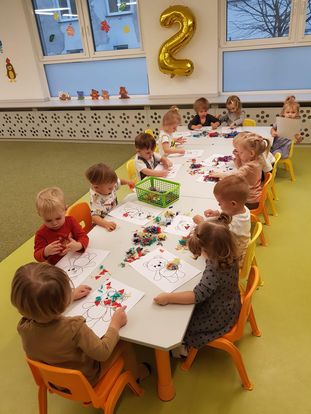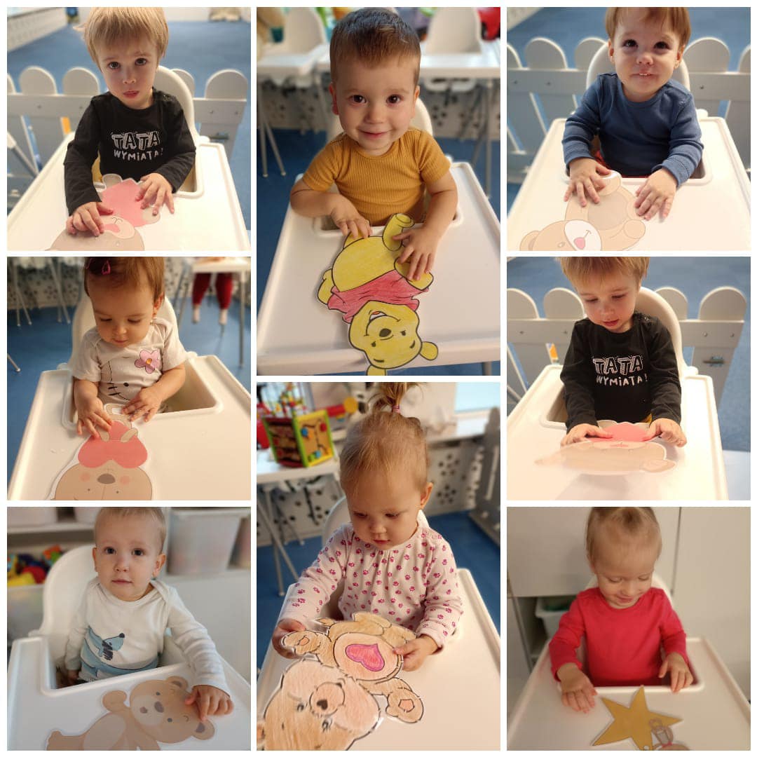 W listopadzie obchodziliśmy Światowy Dzień Pluszowego Misia - pierwszego, mięciutkiego i puszystego przyjaciela najmłodszych dzieci. Każde dziecko przyniosło ze sobą do żłobka swojego ulubionego misia. Misie bawiły się z nami w różnorodne zabawy muzyczno-ruchowe, przebieraliśmy się za misie, przymierzaliśmy misiowe maski, malowaliśmy i wyklejaliśmy misiowe portrety. Zabawy, śmiechu i radości było co niemiara! Zapraszamy do oglądania zdjęć z tego wydarzenia :)