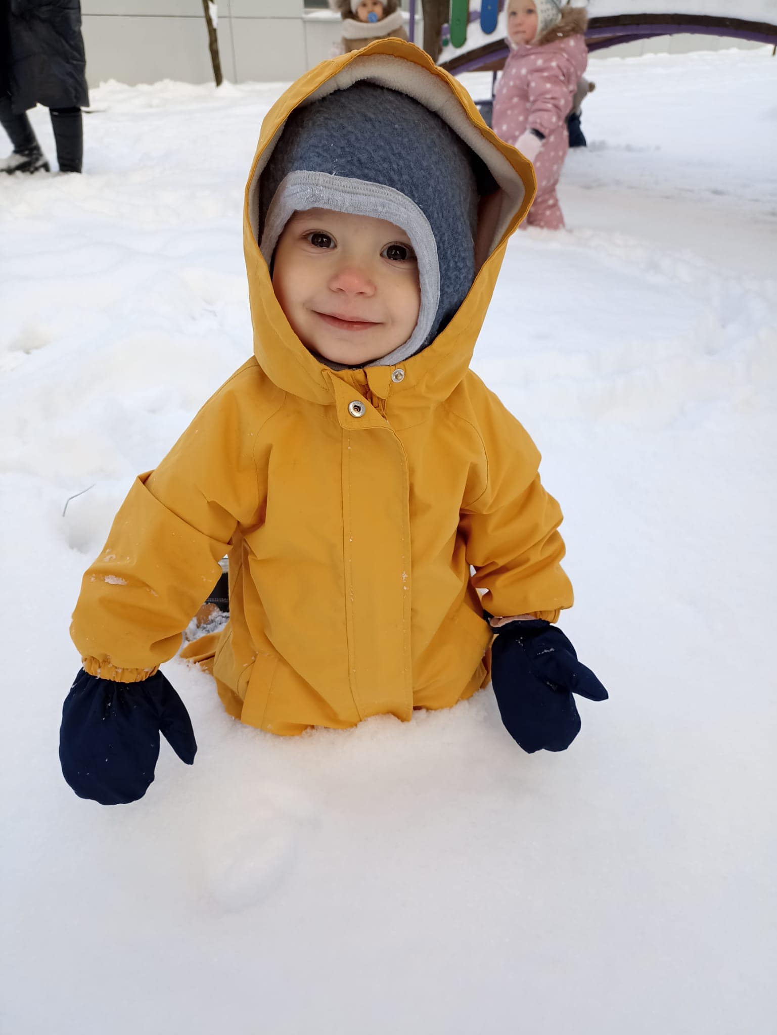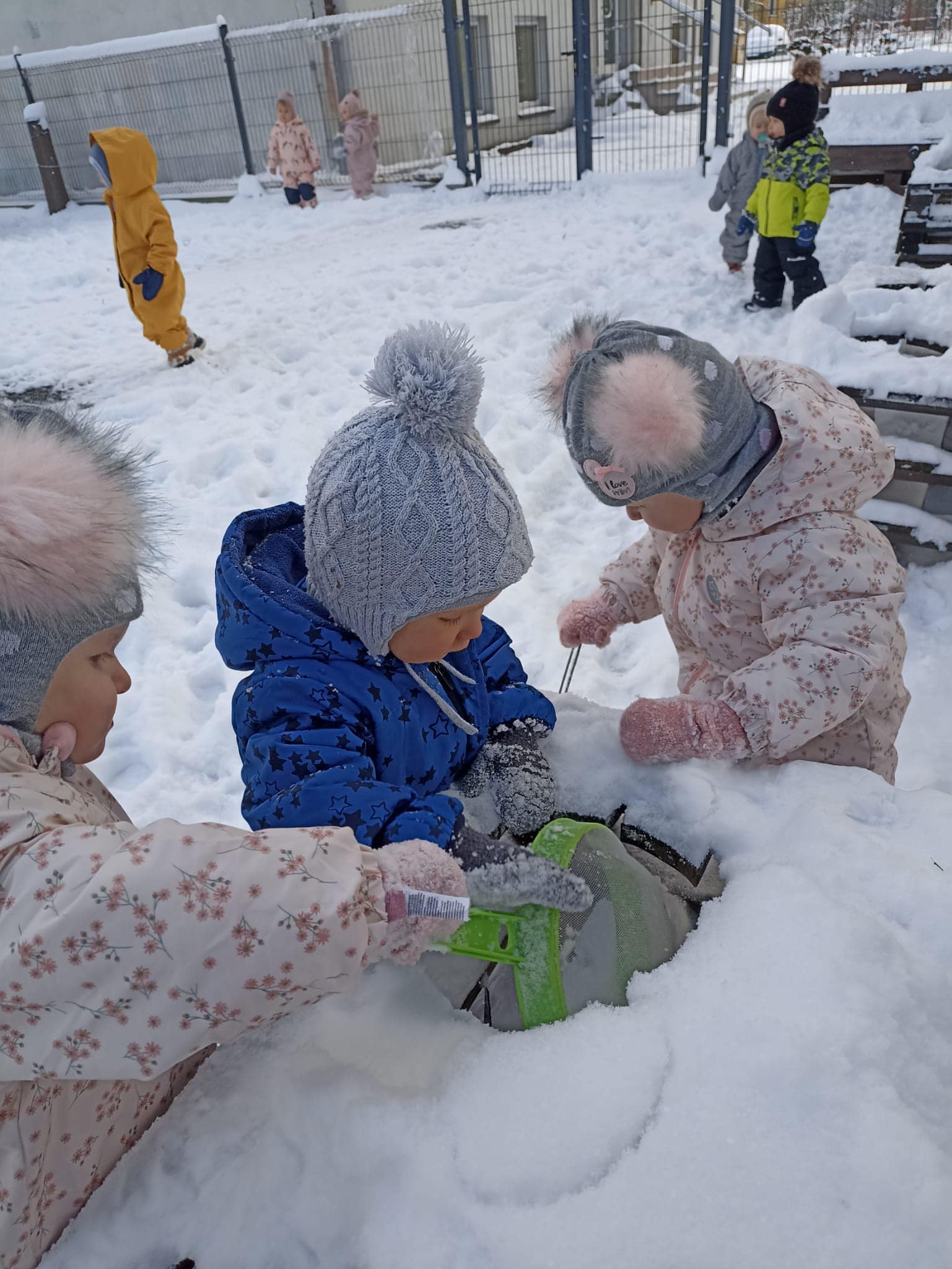 Tak rzadko zdarza się, aby u nas spadło tyyyyle śniegu! Nie mogliśmy postąpić inaczej jak skorzystać z naszymi najmłodszymi dziećmi z tej ilości białego puchu. Ciocie zorganizowały na ten dzień sanki, Rodzice zapewnili odpowiedni ubiór dla dzieci i została nam juz tylko wspaniała zabawa na żłobkowym placu zabaw. Było dużo radości i śmiechu, ale też dramatów rękawiczkowych czy po prostu wywrotek na niestabilnym podłożu. Po naszym białym szaleństwie na śniegu wszystkie dzieci spały jak aniołki :)
