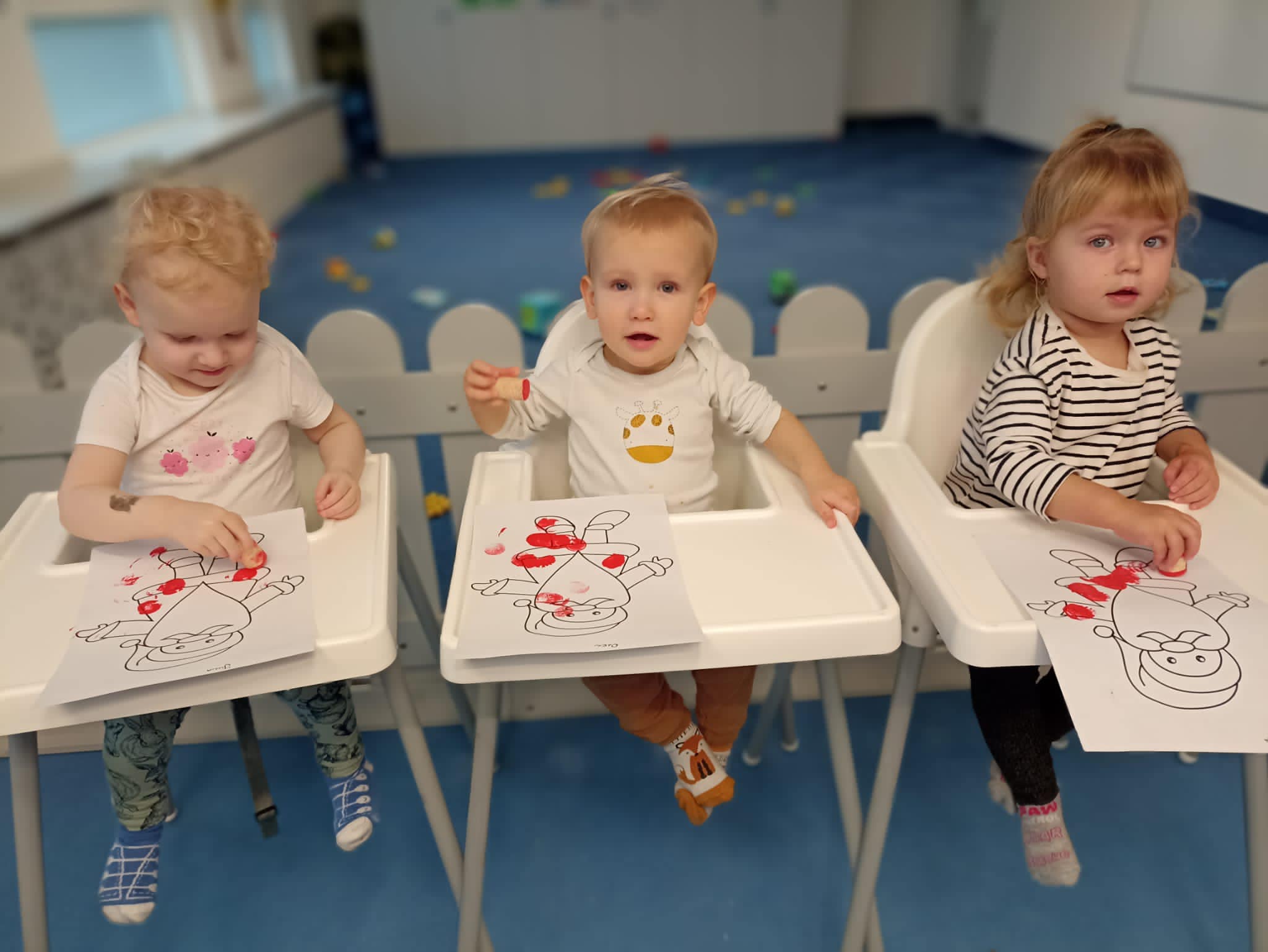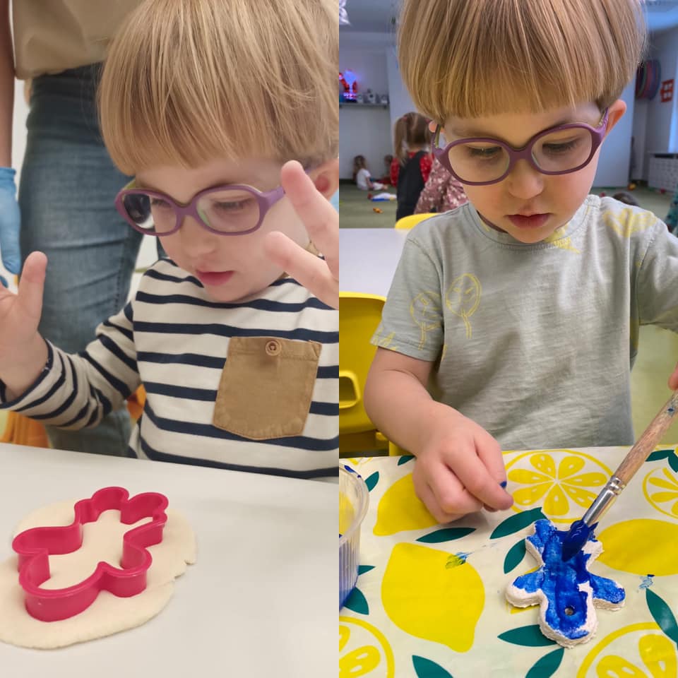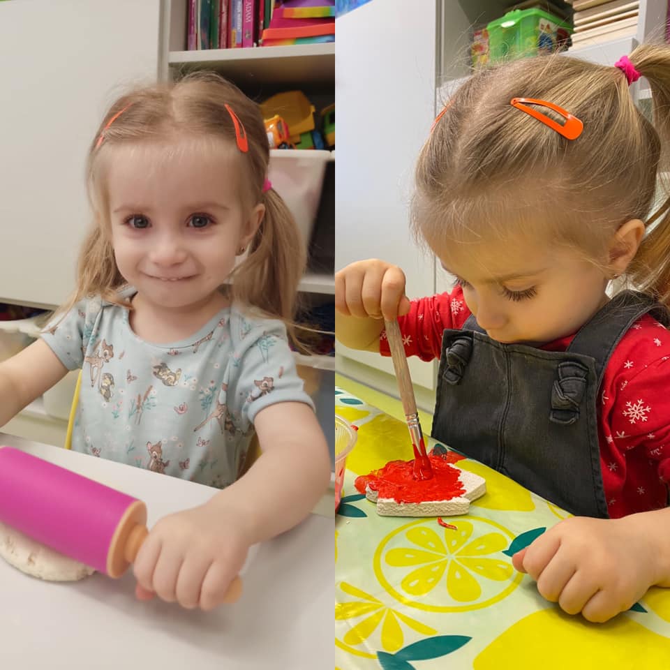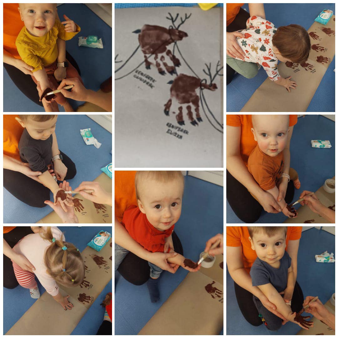 Prawie połowę grudnia poświęciłyśmy na spokojne przygotwania do Świąt Bożego Narodzenia. Wiemy, że w tym czasie wszyscy chcą ze wszystkim zdążyć, więc postanowiłyśmy sie nie spieszyć i wykonać z dziećmi różnorodne zabawy oraz prace plastyczne związane ze świętami. Dzieci - malowały, robiły ciasto solne, wykrawały ciasteczka, ozdabiały, wałkowały, odbijały łapki i stópki - wszystko co tylko wpadło Ciociom do głowy :) Każde dziecko zabrało do domy na święta własne ozdoby choinkowe czy kartki świąteczne. Każda z tych aktywności rozwijała inne sfery poznawcze dziecka, pojawiło się także dużo zabaw sensorycznych. Jesteśmy bardzo dumne z naszych dzieciaczków jak chętnie i z wielkim zaangażowaniem podchodzą do wykonywania swoich prac. Wesołych Świąt!