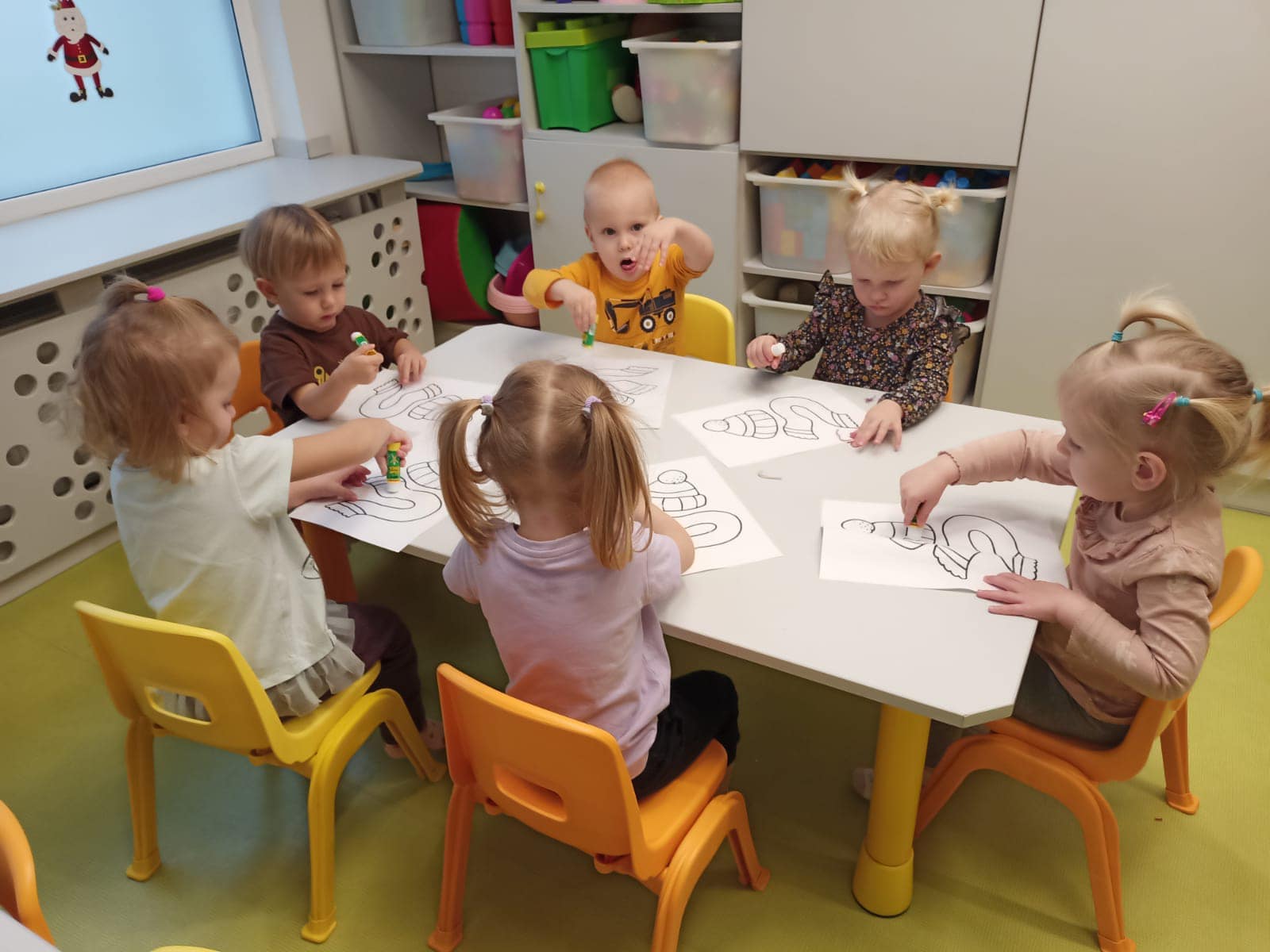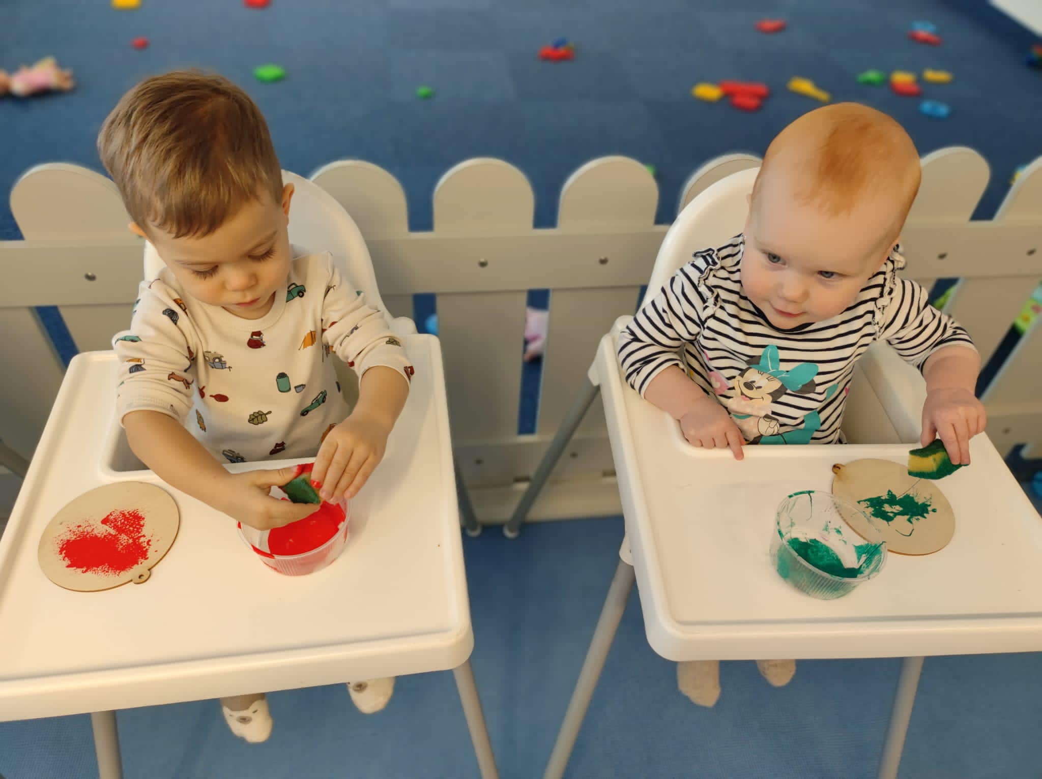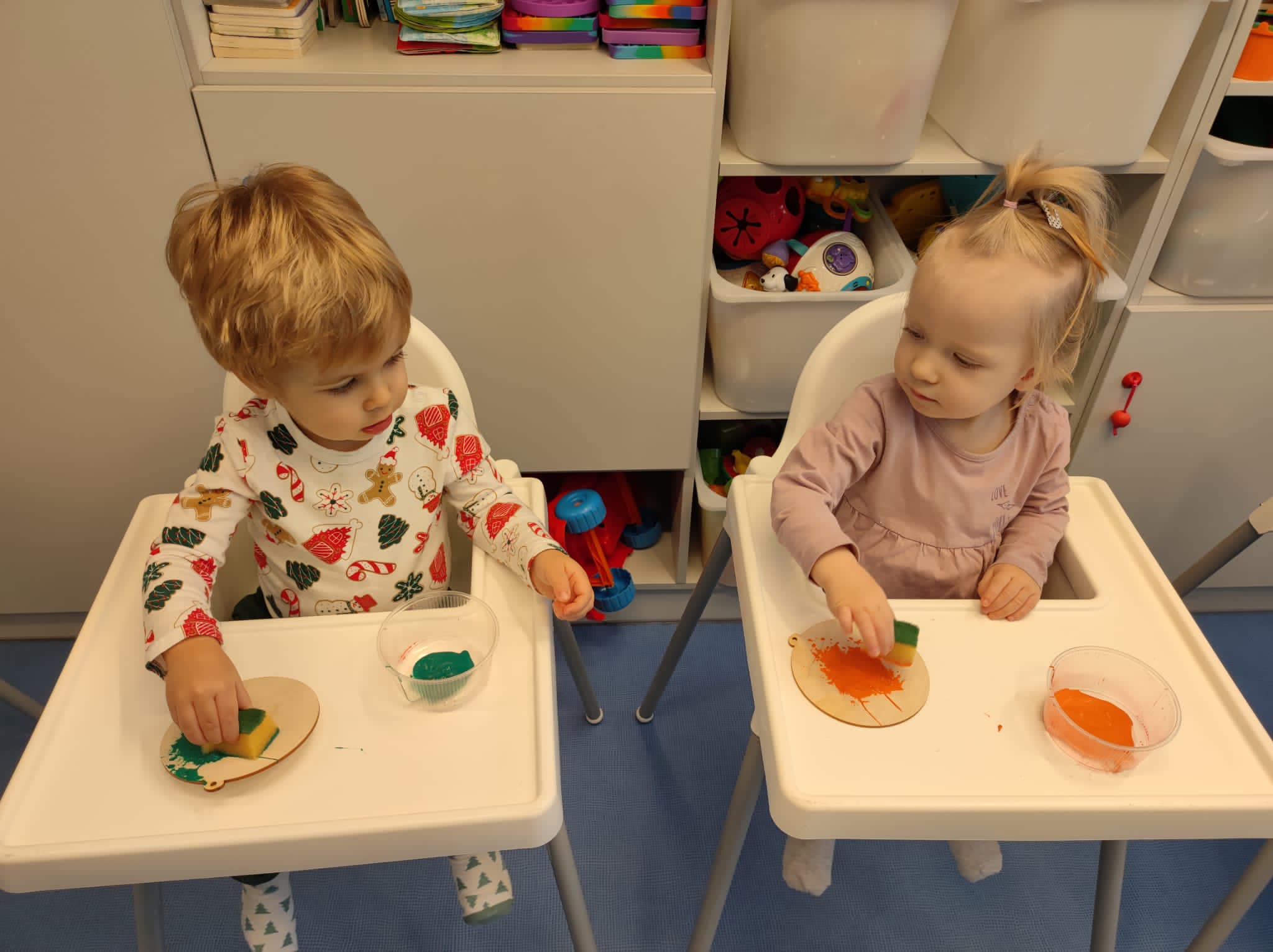 Prawie połowę grudnia poświęciłyśmy na spokojne przygotwania do Świąt Bożego Narodzenia. Wiemy, że w tym czasie wszyscy chcą ze wszystkim zdążyć, więc postanowiłyśmy sie nie spieszyć i wykonać z dziećmi różnorodne zabawy oraz prace plastyczne związane ze świętami. Dzieci - malowały, robiły ciasto solne, wykrawały ciasteczka, ozdabiały, wałkowały, odbijały łapki i stópki - wszystko co tylko wpadło Ciociom do głowy :) Każde dziecko zabrało do domy na święta własne ozdoby choinkowe czy kartki świąteczne. Każda z tych aktywności rozwijała inne sfery poznawcze dziecka, pojawiło się także dużo zabaw sensorycznych. Jesteśmy bardzo dumne z naszych dzieciaczków jak chętnie i z wielkim zaangażowaniem podchodzą do wykonywania swoich prac. Wesołych Świąt!