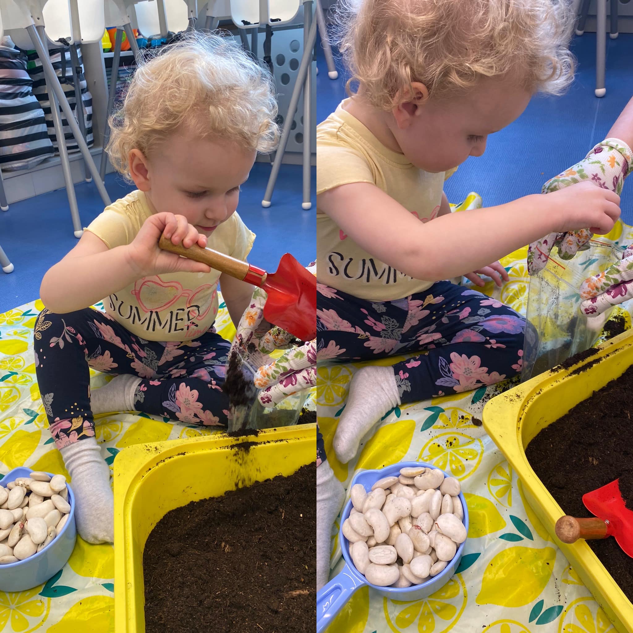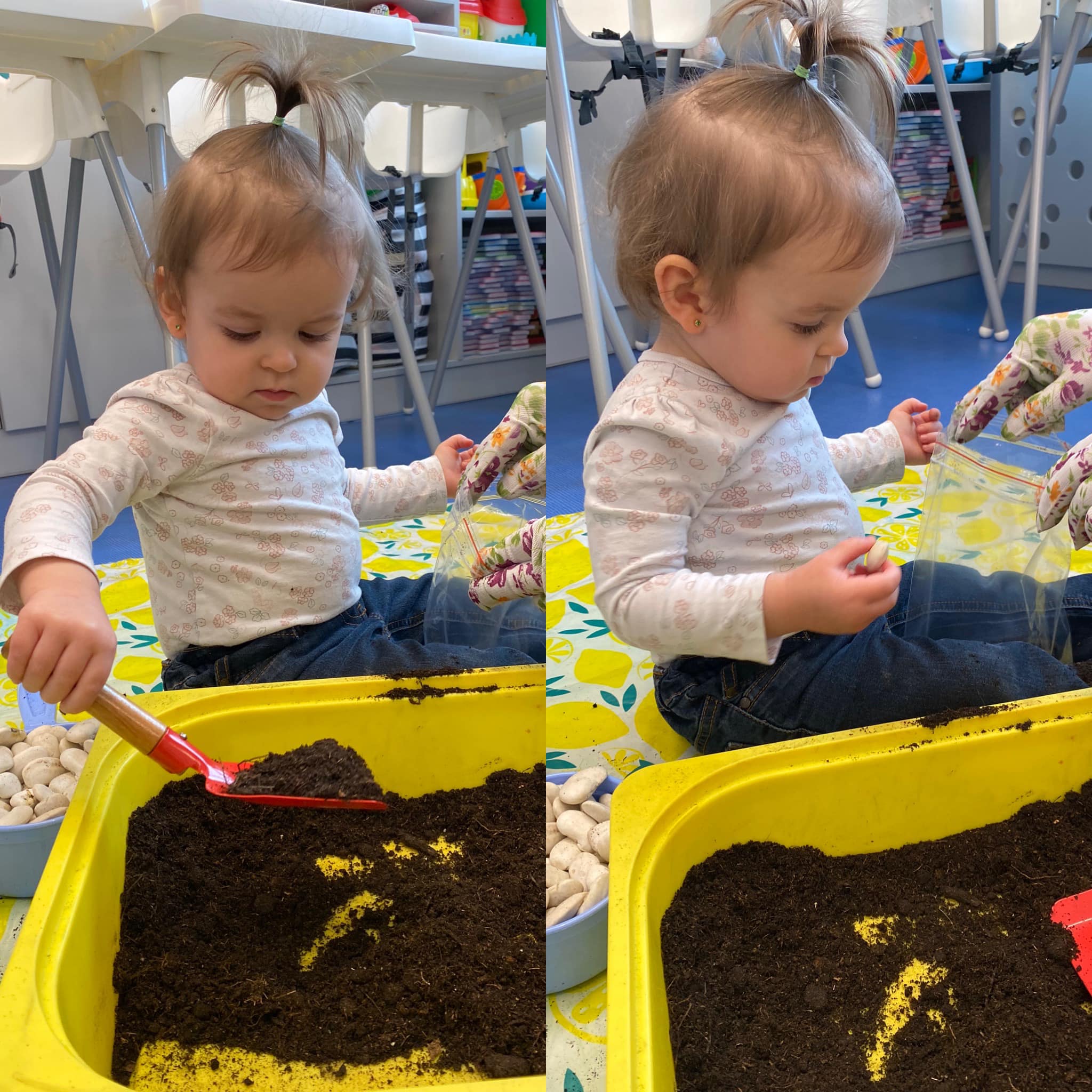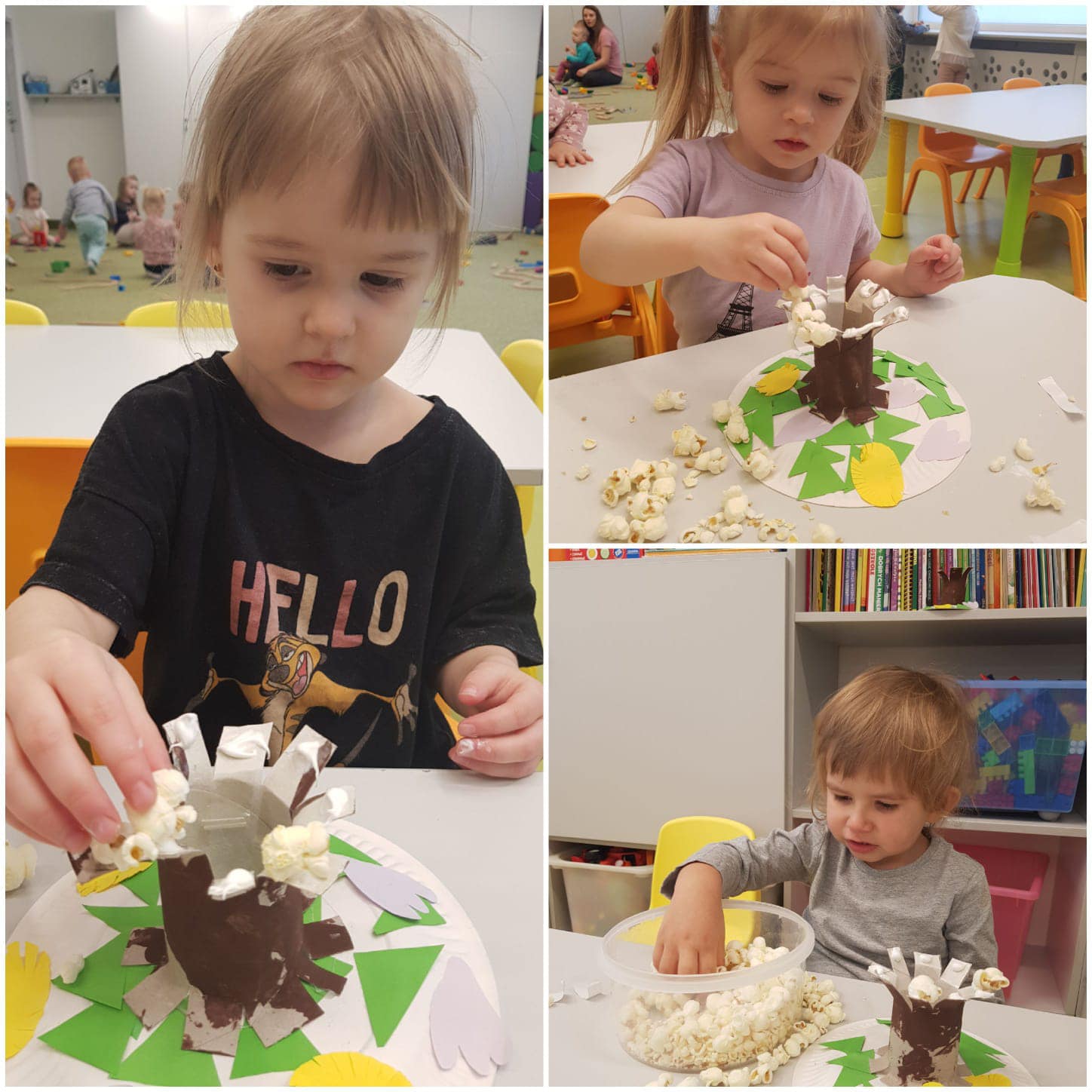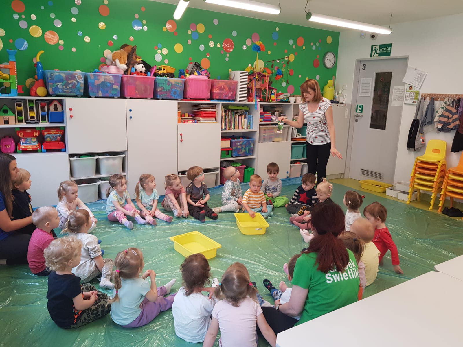 Wiosna w tym roku przychodzi do nas powoli, ale w żłobku świętujemy ją w pełni! W końcu mogliśmy kilka razy wyjść na spacer w poszukiwaniu jej oznak. Obie grupy z radością wykonały wiele prac plastycznych oraz ogrodniczych związanych z wiosną. Maluszki zasadziły fasolki, a starszaki zasiały owies. Pojawiło sie także kwitnące (popcornem) drzewo, piękne hiacynty oraz całe stado żabek. Odwiedziły nas także Marzanna oraz Pani Wiosna we własnej osobie. Wszyscy czekamy już na cieplejsze dni.