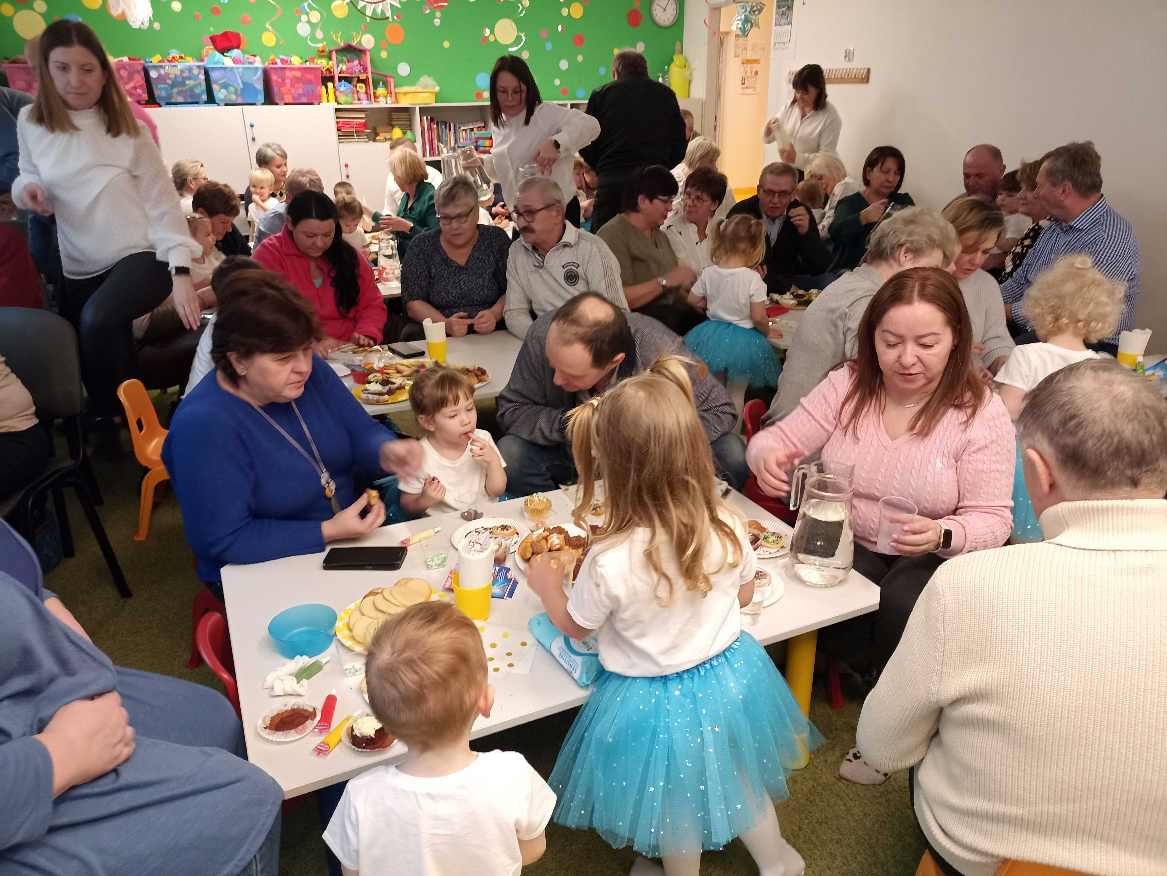 Na ten szczególny dzień dzieci przygotowują dla swoich Babć i Dziadziusiów wierszyki i piosenki, aby pokazać jak wiele dla nich znaczą. Organizowane są również warsztaty aby móc wspólnie spędzic czas - w tym roku nasi goście wraz z wnukami dekorowali pyszne ciasteczka. Po wszystkich aktywnościach serwowany jest słodki poczęstunek aby umilić wszytskim to wyjątkowe święto.