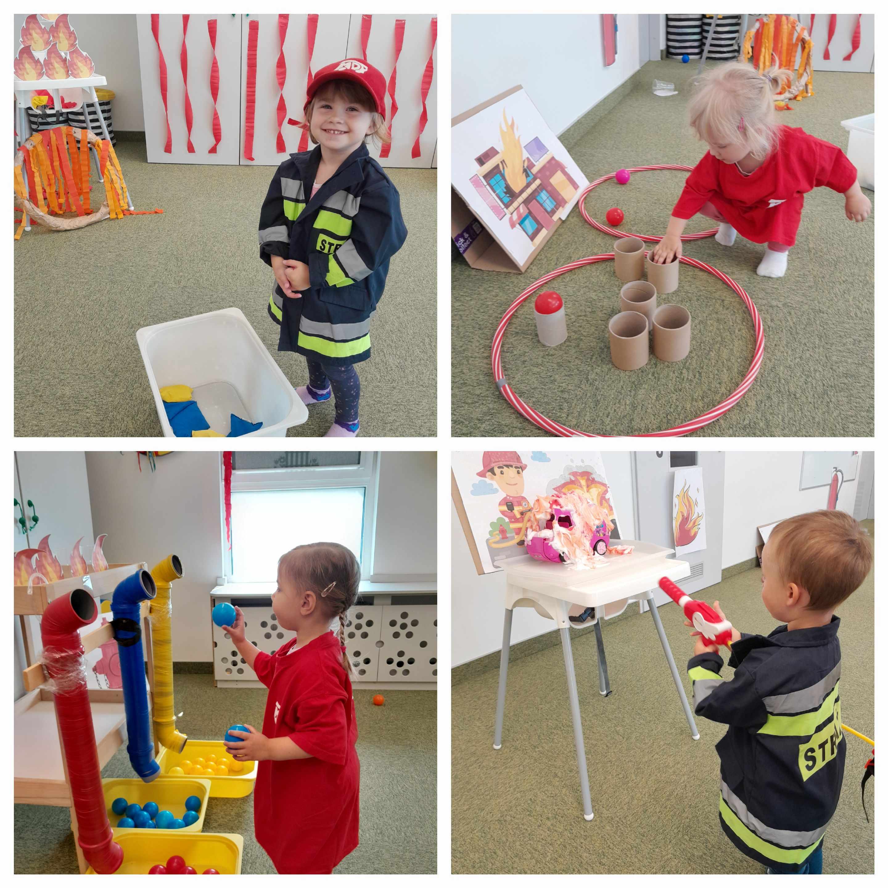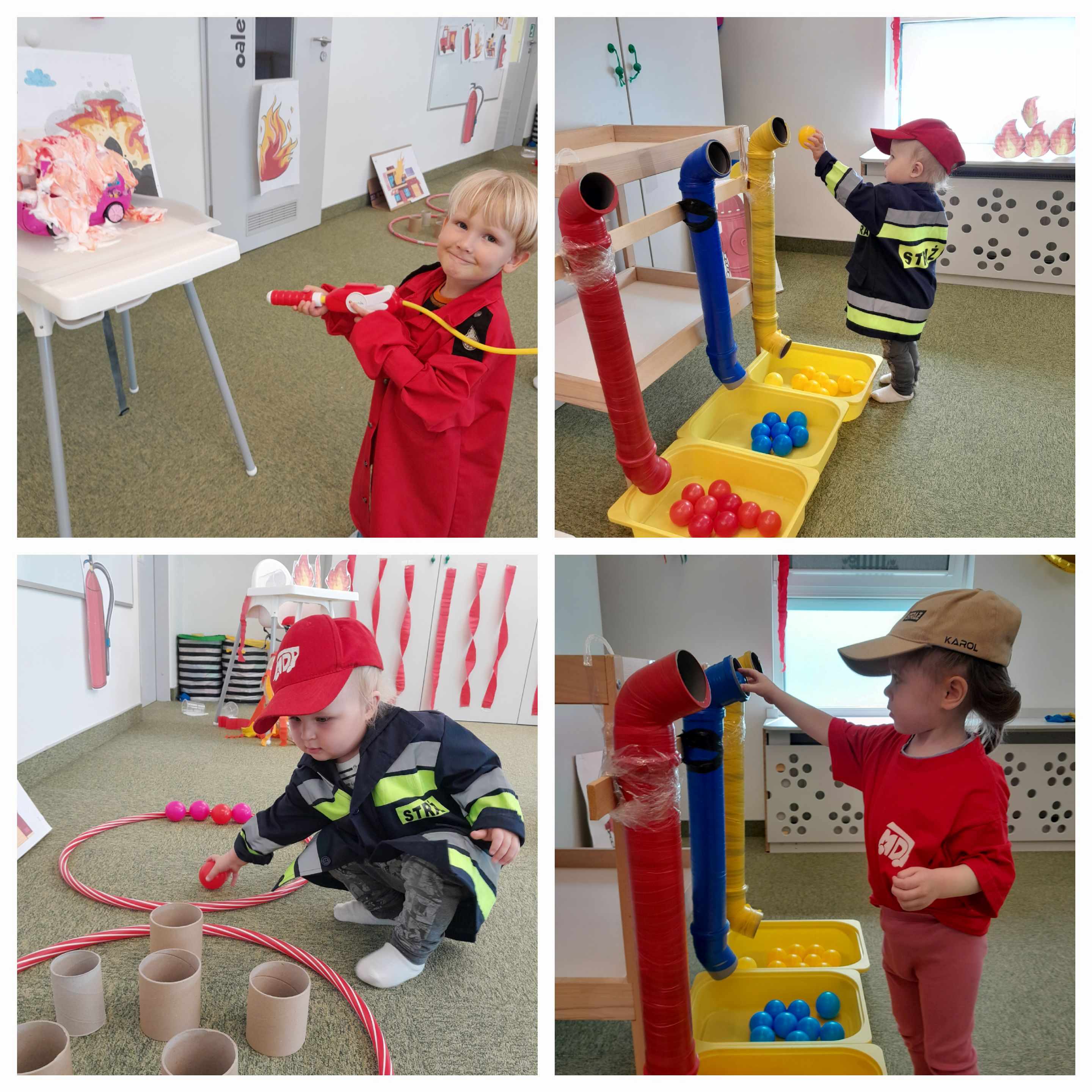 Dzień Strażaka to doskonała okazja, by przybliżyć dzieciom ważną rolę strażaków poprzez zabawy ruchowe i plastyczne. Przygotowany przez opiekunki tor z przeszkodami sprawił wiele radości dzieciom, które chętnie wykazywały się swoimi umiejętnościami.