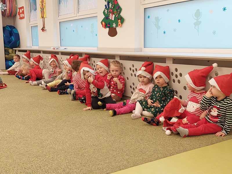 ,,Dźyń,dźyń,dźyń Mikołaju Święty dźyń,dźyń,dżyń przynieś nam prezenty.dnia 6 grudnia do naszego żłobka przyjechał Teatr Lalek Bajka z przedstawieniem pod tytułem,,Opowieśc wgilijna''.Każde dziecko ubrane było na czerwono,a na głowie miało mikołajkowa czapeczkę.Pod koniec spektaklu ukazała się postac świętego Mikołaja,który został z nami żeby rozdać naszym dzieciom prezenty.Spotkanie minęlo w bardzo miłej atmosferze i przyniosło wiele radości.