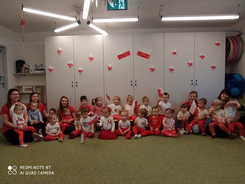 „Już przed laty okrzyknięto W listopadzie ważne święto 11-sty dzień miesiąca Niesie z sobą mnóstwo słońca Bo to bardzo ważna data I dla Polski i dla świata. Żłobkowicze pamiętają Całą Polskę pozdrawiają”